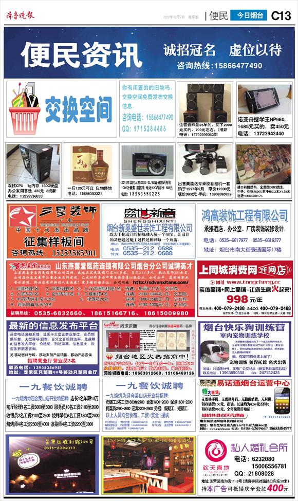J13版:今日烟台·便民