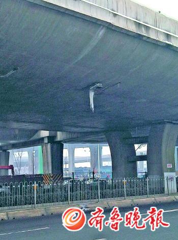 本报96706热线消息(记者 任志方) 5日一场降雪过后,路面积雪都已融化。不过6日,记者在北园高架桥部分路段看到,融化的雪水顺着高架桥体滴下结成了10多处长度不等的冰锥,倒悬在桥体上,危及过往车辆和行人安全。 沿北园大街从山大二院附近出发一直到北全福站附近,记者共发现有十余处长度在半米至一米的冰锥,其中几处冰锥正对着下面的快车道,看上去十分危险。 而这种情况在位于全福立交桥附近桥体也同样存在,在全福立交桥南侧,离地面约一层楼高的地方,仍然有一根长约1米的冰锥,下面正对着车流穿梭的路面。 再从全福立交桥向西走约两站路,到达公交南全福站附近,在北园高架桥的桥体上赫然悬挂着一根长约一米的冰锥,下面就是人行通道。从这里经过的市民对于头上的危险浑然不觉。 “没注意到,千万别掉下来砸到人,不然非出事不可。”经记者提醒,从这里经过的市民杨女士看到悬在头顶的冰锥吓了一跳,她建议有关部门及时对这些潜在的危险进行清理。 而从全福立交桥继续向南顺着二环东路高架桥走,七里堡市场附近的铁路桥下面依然能看到倒悬的冰锥,记者粗略数了一下,有四五处,看上去这些冰锥是由于塑料排水管渗出的水形成的,长度在一米左右。 由于铁路桥的桥体要比北园高架桥高出不少,记者目测可能约有3层楼高,冰锥一旦掉下砸在车上,后果不堪设想。 记者了解到,本周六济南白天的气温将回升到零摄氏度以上,如果这些冰锥不能得到及时清理,随着天气变暖,冰锥很可能会坠落,会对行人和车辆形成威胁。 此外,记者发现此次二环东路高架桥下并未出现严重结冰,记者沿路看到只有一些不到十厘米长的小冰锥。二环东路高架桥管理站的工作人员告诉记者,为了防止出现悬冰的情况,6日早晨他们一上班就沿着高架桥底进行了检查,及时清理了安全隐患。