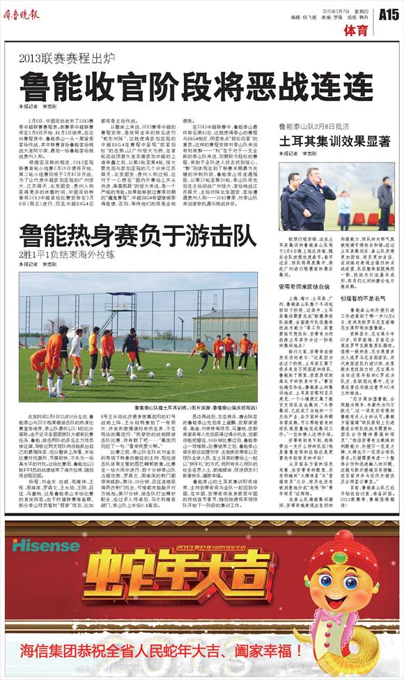 鲁能热身赛负于游击队