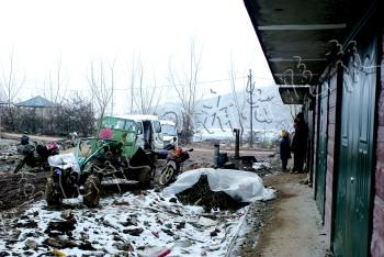 | 新楼房下放着摩托车、拖拉机和家庭轿车。