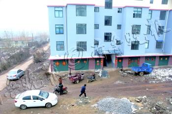 |  | 新建的楼房和新修的路面,楼下还没有绿化。