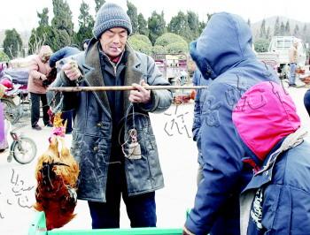 2月7日,平阴县一集市,有人在买活鸡为春节做准备。 张召星 摄