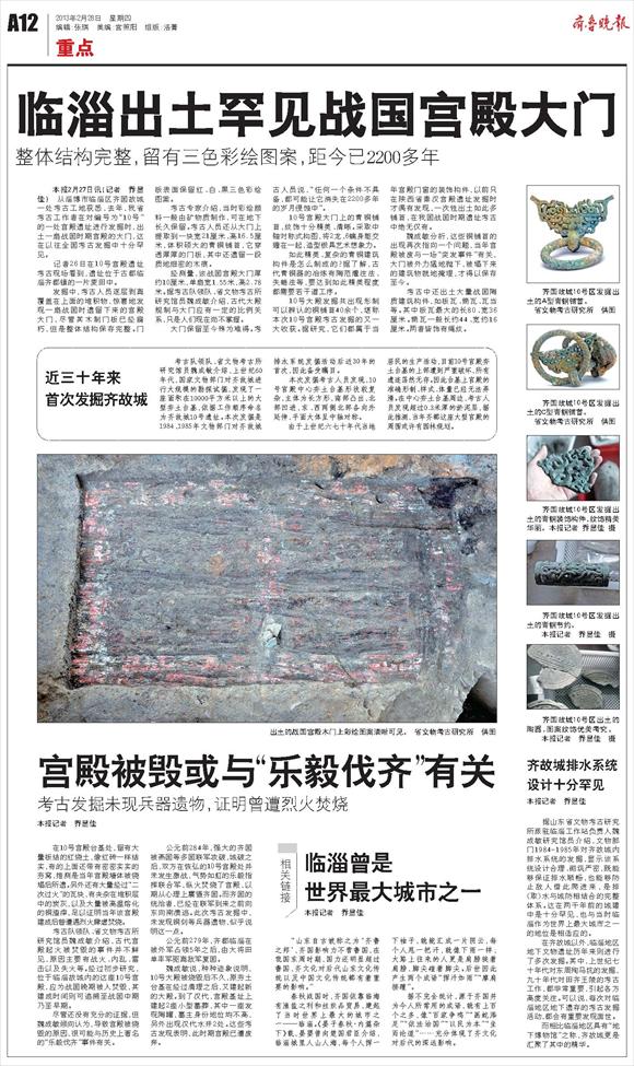 临淄出土罕见战国宫殿大门