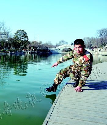 成功救下落水女子 未留信息他悄然离开 “当时有二三十人围观,都没人下去救,幸亏有个小伙子过来把人救出来。”市民刘荣伟目睹了当时王庆亮救人的整个过程,从下水到将女子救起不过10分钟时间,“那个年轻人走了之后,那个落水的女子和另一名妇女一起走了,手一直捂着肚子。” 当天值班的人民公园管理处工作人员王冉赶到现场时,已经找不到救人者的身影,“只听说是个小伙子,救完人就走了。落水的女子浑身都是水,她说自己没事,天气比较凉,她就赶快走了。” 王庆亮回到武警济宁市支队教导队,身上湿透的衣服被风一吹,格外的凉。“当时没有想太多,下到水里才觉得水很凉。也有附近的游船划过来想救她,但距离比较远,我就先过去救她了。湖底很滑,我也不太清楚水有多深,当拽到她的那一刻,我的心才感觉踏实了许多。”武警部队领导看到王庆亮湿透的衣服,询问他后才知道他下水救了人。“这个女子是谁,为什么落水,我都没问。我只想快点把她救上来,她说没什么事,我就离开了。” 4日下午同记者一起再回到救人的湖边时,王庆亮看着未知的水深也觉得有些后怕,“当时水已经到我的脖子了,如果再往里走的话,水可能会更深,但当时根本没有想这些。”入伍八年,这是王庆亮第一次下水救人,在平时的工作中,他更多的是做文书工作。 “刚开始做文书时,我连电脑都不会,但是我不想放弃,就开始买教材自学,一点点地学。”王庆亮说他相信只要想做好的事,努力就一定能做到,“看到陷入危难的人,我也一定要想方设法去救人。如果不抓紧时间救人,或许会出现意想不到的后果。”