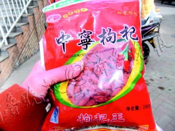 | 与正常的枸杞相比,李女士买的枸杞泡水后,颜色明显较深。 记者 秦雪丽 摄 |  | 李女士买的这袋枸杞,包装上没标注生产日期。
