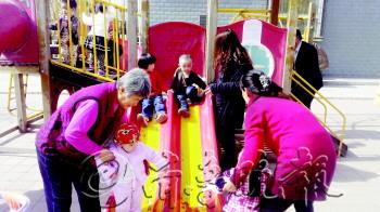 本报记者 崔岩 实习生 杨照君 王庆珍 小区里,广场上,常见一些滑梯、秋千等户外小型游乐设施吸引不少孩童,免费或者一两元的低廉价格也令家长乐得解囊。然而,记者连日走访发现,这些户外小型儿童游乐设施的安全性能及卫生状况却存在监管真空。 明知危险,家长还带孩子来玩 “昨天下午,俩小孩儿从这个滑梯上掉下来,摔昏迷了。”8日上午,天桥区天和园小区里,居民王女士指着小区里肇事的滑梯洞口告诉记者,该洞口已坏了很长时间,一直没维修。 受伤的孩子是一男一女,两岁半左右,都在天和园小区住。“当时滑梯上孩子多,一挤就把这俩孩子挤下来了。”孩子的母亲田女士说,孩子当时摔得迷迷糊糊,叫来急救车后被送往了济南市第四人民医院,“做了头部扫描还有胸腹部检查,倒是没什么大事儿。” 记者看到,孩子摔伤后,小区物业已经临时用木板将惹事的滑梯洞口封住了,并在滑梯上贴了通知,“由于本小区儿童滑梯年久失修,有潜在危险,为确保业主孩子的人身安全,滑梯暂时停用维修。” 然而,记者看到,仍有不少家长带着孩子在滑梯上玩耍。明知危险,为何还带孩子玩?家长的回应不谋而合:“孩子非闹着来,又没有别的去处。” 不少家长也反映,这个滑梯已经摔过不少孩子。就在春节前后,一个孩子还从滑梯上摔下来,摔坏了嘴和牙齿,地上流了一摊血。“现在终于安了块木板,之前就是个大洞口,很危险。”其中一名家长说,该滑梯使用以来,从来没见维护过。