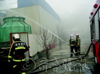本报3月14日讯(记者 王亚男) 14日下午5点30分左右,在淄博高新区裕民路和三赢路交叉口的恒昌塑胶制品厂厂房房顶发生了一起火灾,市消防支队调集了特勤一中队、石桥中队等8辆消防车赶赴现场救援。经过近2个小时的扑救,成功将火扑灭,没有造成火灾扩大蔓延。 据了解,这个厂房的房顶是使用彩钢板做的,由于彩钢板的中间物质为塑料泡沫,是易燃品,蔓延速度极快,又由于表面的铁皮隔水,很难将水射向起火点直接灭火,所以只能采用阻截夹攻火势、射水降温的办法。消防官兵在现场将消防车依次排开,轮流加水,不停向起火部位射水,最终将火扑灭。 据了解,该厂主要生产一次性塑胶手套。目前,火灾原因还在进一步调查中。