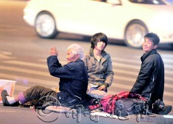 | 一乞丐团伙街头演戏骗取市民爱心,记者跟踪揭其伎俩 | |