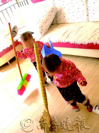 作品描述:我们来视察,检查下妈妈地扫得干不干净。