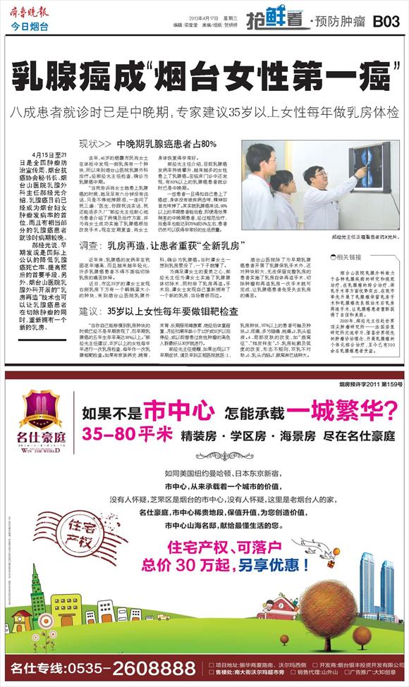 乳腺癌成“烟台女性第一癌”