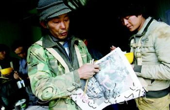 | 来烟打工的四川人熊正富向记者要过报纸仔细翻看。 记者 赵金阳 摄 |