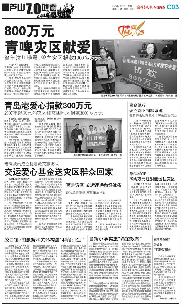 今日青岛·芦山地震