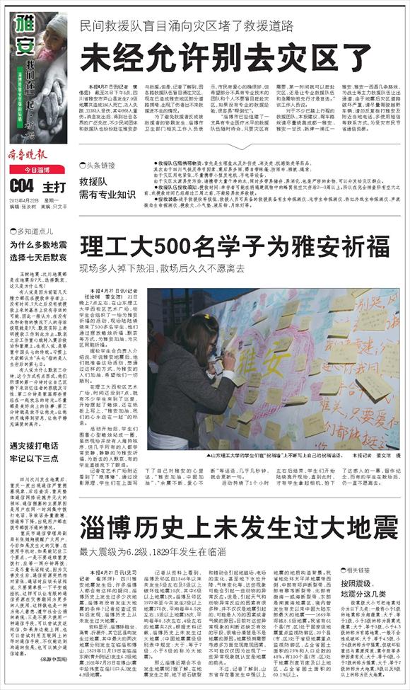 今日青岛·芦山地震