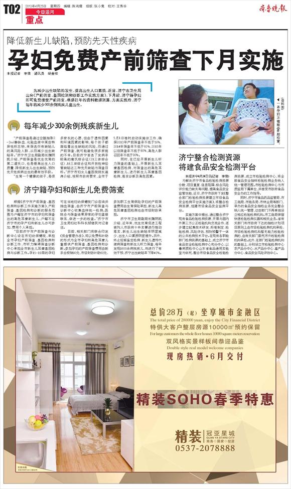 济宁籍孕妇和新生儿免费筛查