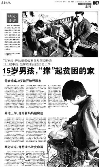 本报济宁5月5日讯(记者 李蕊) “我的力量虽有限,但也希望能尽其所能的帮助他。”本报4月27日《15岁男孩,“撑”起贫困的家》一文报道了嘉祥男孩吴尚6年照顾病重母亲的感人事迹,引起了不少市民的关注。5日,济宁城区24岁的药厂维修工高伟赶到本报,表示要每月资助吴尚200元,直到他18岁,并送上首笔爱心捐款。 “小小的年纪,既要照顾自己,还要照顾病重的母亲太不容易了。”高伟坦言,这个比他小9岁的弟弟很了不起,他希望这样勇于担当的好孩子能够生活得更好。“每个月200元钱至少能帮助他改善下伙食,这个年纪正是长个子的时候,总吃方便面怎么行。” 高伟告诉记者,自己参加工作没多长时间,每个月的收入只有2000元左右。看到吴尚事迹的报道后,也曾想过更好的帮助他,但自己毕竟能力有限。“每个月200元或许不算多,但持之以恒的帮助会对吴尚帮助更大。”高伟告诉记者,每个月节省下200元,对他来说只是少和朋友聚两次,少买件衣服,但却可以让这个贫困的家庭,餐桌上多几顿可口的饭菜,他觉得这事做得值。 目前,高伟已和吴尚取得了联系,他表示下一步如果有时间,打算去嘉祥看看这个勇于担当的男孩。