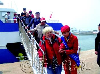 | 游客通过新绎一号登上长岛。 记者 姜宁 摄 |