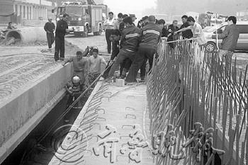本报郓城5月5日讯(记者 邓兴宇 通讯员 宋清元)4日5时许,水深约一米,空间狭小,车内两人自救逃生,一名女子被卡车内。郓城大队金河消防中队三名消防队员跳水救援。 4日5时19分,菏泽郓城消防大队金河中队接到报警称,郓城220国道葛营桥段,一辆黑色轿车不慎从正在施工铺设桥梁的桥上翻到桥下,他们迅速赶往现场。一辆黑色轿车在通过葛营桥时,不慎从正在铺设桥梁的两个桥面之间翻入河中,车上共有3人,驾驶员和后坐一名男性已经从车窗自救逃生,副驾驶位置一名女性由于车门变形和安全带未解开的缘故被卡在车内,无法逃生。 由于黑色轿车仰面翻到河水里,水面距离桥面约两米,水深约一米,空间狭小,大型救援设备无法展开救援作业。看到被困女子在车内拼命挣扎,三名消防队员立即跳入浑浊的河水中,将牵引绳索系在车架、车轮等位置,在交警及群众的共同配合下先将汽车翻转过来,为被困女子创造足够的救援空间。随后,救援人员又强行将车门打开,抱出被卡在副驾驶座位上的被困女子,用绳索将其拉上路面,然后迅速送往医院进行抢救。