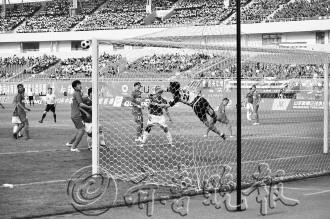 4日,中国足协乙级联赛2013赛季开幕式在滕州体育中心举行。揭幕战由山东滕鼎队主场对阵呼和浩特东进队。首次组队参赛的山东滕鼎队在比赛中丝毫不落下风,赛事紧张精彩。双方最终均未能攻破对方球门,两队0:0握手言和。图为山东滕鼎队的任意球被对方守门员飞身扑出。 本报记者 袁鹏 摄影报道