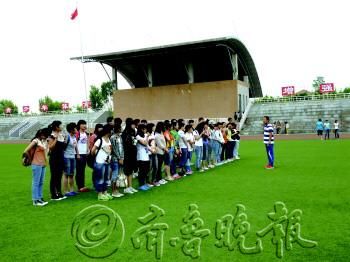 | 体育老师高海侠带着学生在上体育课。 见习记者 王伟平 摄 |