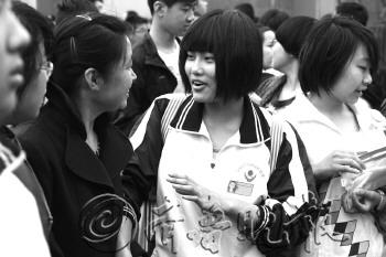 | 考生向家长说着考完后的感觉。 本报记者 张爽 摄 |