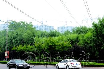 | 被劈坏的柳树。 |  | 事发路段人行道上已经设立警戒线,并有专人看护。