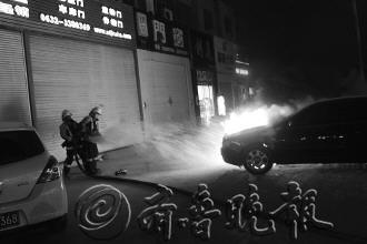 轿车停路边突然起了火
