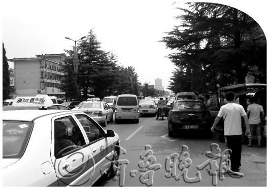 本报7月10日讯 (见习记者 于鹏飞) 10日上午,莱芜高一、高二学生放暑假,学生纷纷收拾书本、被褥、铺盖涌向校门口。记者在十七中校外看到,周围停满接送学生的私家车、出租车,有些车甚至违规停在鲁中西大街主干道上。众多违规占道车辆造成该路段交通堵塞长达1小时。(如图) 记者在现场看到,路边停放的不只有学生家长开来接学生的私家车,还有一些来拉活的黑出租,在路北人行道上还有暑假辅导培训机构前来招生。该路段引起交通堵塞后,莱芜市交警支队城区大队五中队派多名交警前来疏导交通,劝说违规停在主干道上的私家车及出租车尽快驶离。现场指挥交通的刘警官说:“车辆违规停在两侧主干道上,原本四车道的鲁中西大街只留下中间两个车道,四周人多车多,车辆不能及时顺利通行,从而引发交通堵塞。这种特殊情况,我们只能尽量劝阻违规车主,也体现咱交警执法人性化。” 经过多位交警近1个小时的指挥,该路段在11点半逐渐恢复通行。