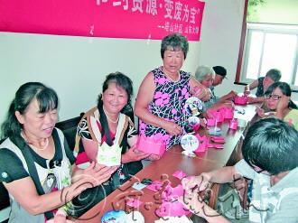 16日上午,8位来自山东大学(威海)的志愿者走进塔山社区,教20位社区老人用生活中的边角料做工艺品,包括用废旧扑克牌折糖果盘、礼盒等以及用废旧毛线穿旧唱片做装饰风铃等。