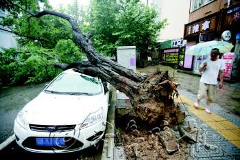 | 雨中轰然倒 大树砸两车 |
