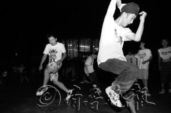5日晚上9时,大剧院广场上十几名小伙子放着动感音乐,在广场一角奋力起舞。原来他们是一个团队,叫做Bass Hunter。领队吕兆峰告诉记者,他们跳的是曳步舞,这种舞步看起来就像是拖着脚走路,可实际上舞步要求快速有力的动作和对节奏的准确把握。一连串动作下来,动感十足,充分展示了年轻人的活力。