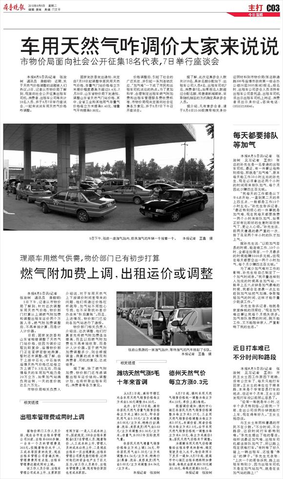 潍坊天然气涨5毛十年来首调