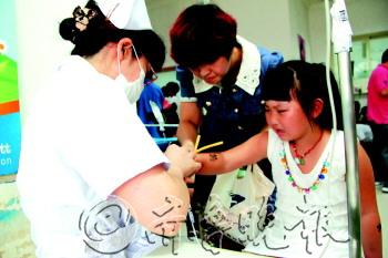 | 毓璜顶医院儿童门诊室内,护士正给一位小朋友输液(资料片)。 本报记者 韩逸 摄 |