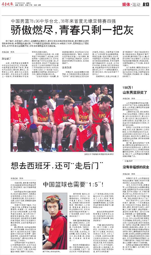 150万!山东男篮获奖了