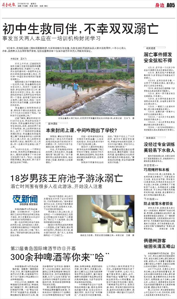 初中生救同伴,不幸双双溺亡