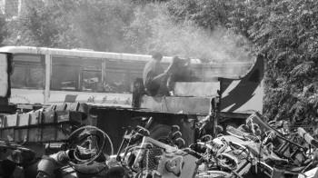 | 在德州龙马汽车设备更新回收拆解厂内,工人正在拆解报废车辆。 宫凯悦 摄 |  | 在青龙潭小区内停放着一辆报废的北京吉普车,五六年了却无人问津。 宫凯悦 摄 |