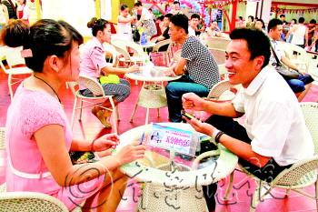 | 在“五分钟约会”活动现场,单身男女聊得很投机。 本报记者 李军 摄 |