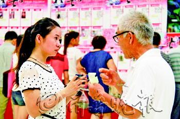 | 一位父亲为儿子挑中一名女孩,在向这名女孩深入了解情况。 本报记者 李军 摄 |