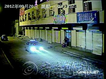 | 图为监控中拍到嫌疑人盗窃得手后打出租车离开。 |
