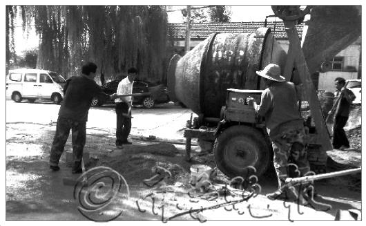 29日上午10点,记者在颜庄镇宣传委员李超的带领下来到了柳桥峪村。车刚驶进柳桥峪村的村委,记者就看到在村委外空旷的土地上一支‘建筑队’正顶着烈日工作着。“吆,还真干啊。”顺着李超说话的方向,记者看到一个身穿白色衬衣、休闲西裤的男子手中握着铁锹,弯着腰铲水泥沙子。李超介绍说,这位不顾形象,顶着毒日头在工地带头干活的男子正是柳桥峪村以全票当选村委主任和书记的“双百书记”李永奇。