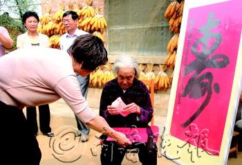 9月23日,菏泽“百岁老人献百寿”书法作品捐赠仪式举行。该活动由菏泽市老龄办、菏泽书法艺术研究会举办,由著名书法家写出100余幅“寿”字作品赠送给全市的百岁老人。当日即赶往东明对百岁老人进行捐赠,并发放长寿补贴。
