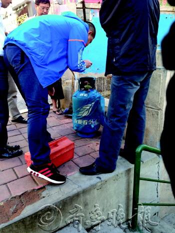 | ▲燃气公司工作人员对液化气罐进行检测。