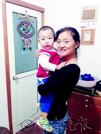 | “绿色妈妈”和儿子笑笑。 本报记者 张子森 摄 |