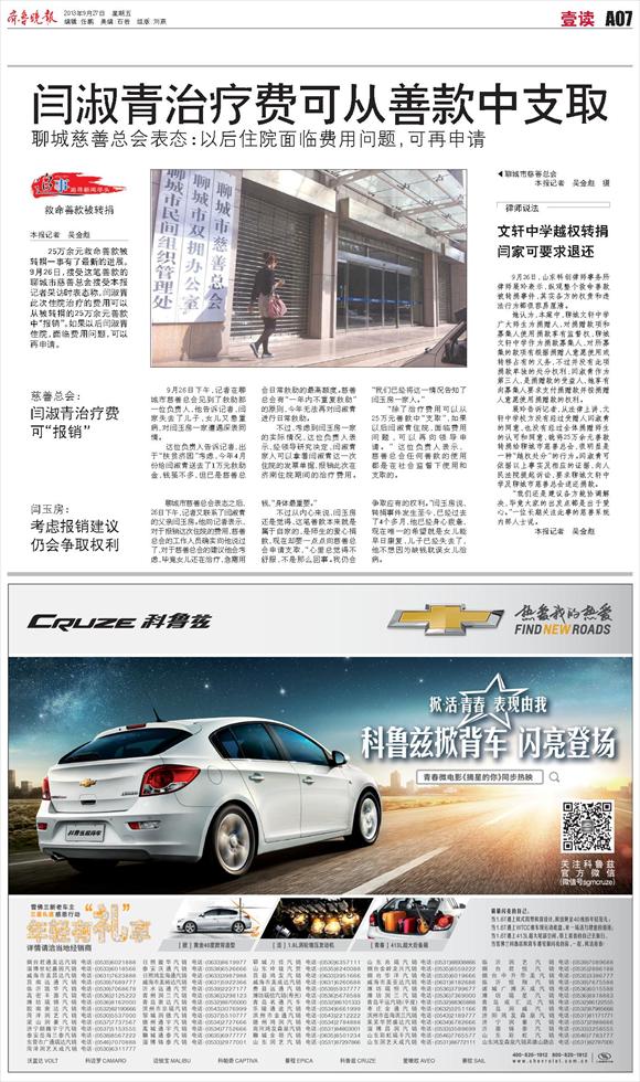 闫淑青治疗费可从善款中支取