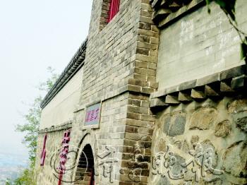 | 华山核心景观文昌阁上被涂满涂鸦,大煞风景。 李师胜 摄 |