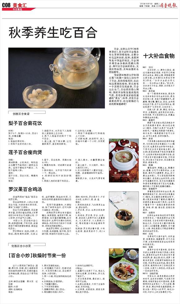 秋季养生吃百合