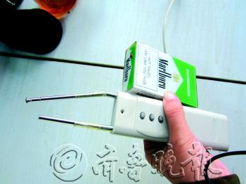 ◤芝罘警方在嫌疑人身上搜出的干扰器。 本报记者 侯艳艳 摄 本报记者 侯艳艳 通讯员 路明 福基