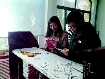 | 一对新人展示刚刚领到的结婚证。 见习记者 王富军 摄 |  | 领到证后迫不及待地查看。 见习记者 王富军 摄 |