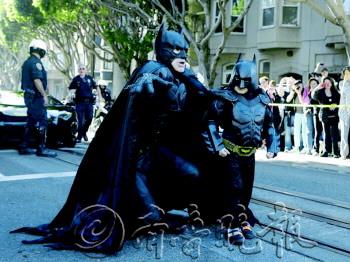 为实现5岁白血病患儿迈尔斯·斯科特当“蝙蝠侠”的心愿,美国旧金山市15日变成电影《蝙蝠侠》中的高谭市,警方、市长和民众通力配合“蝙蝠娃”抓“坏蛋”、“拯救”城市。