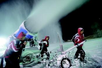 27日清晨最低温-2.4℃,28日早晨可能低至-9℃。随着气温的持续下降,南部山区气温达到零度以下,符合造雪所需条件。金象山、九顶塔等几家滑雪场都已马力全开,造雪机将连夜加紧造雪。滑雪爱好者这周末就可以过滑雪瘾啦! 本报记者 戴伟 摄