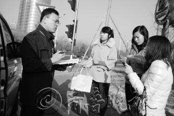 | 4日,考试现场,考官(左)变身游客,随时抛出难题,让考生解答。 本报记者 代曼 摄 |